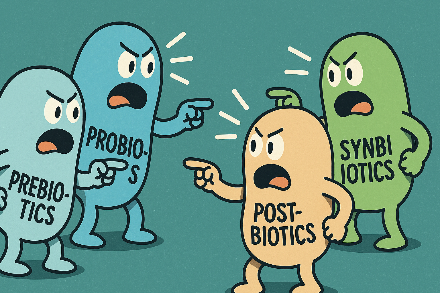 일단 이 모든 '~바이오틱스' 패밀리는 우리 장 건강에 도움을 주는 성분들이에요. 근데 각각의 역할과 특성이 좀 달라요. 간단히 말하자면: